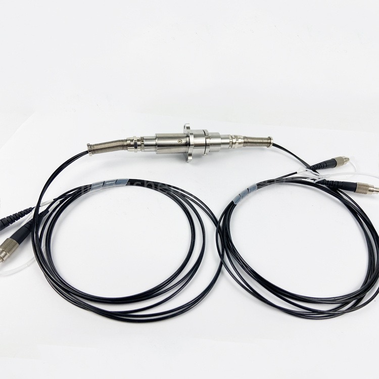 光纤旋转接头又称光纤滑环,光电汇流环,采用光纤为数据传输媒体,为解决旋转连接的系统部件之间的数据传输,提供了佳的技术解决方案。特别适合应用在需要无限制的,连续或断续旋转,同时又需要从固定位置到旋转位置传送大容量数据、信号的场所,能改善机械性能,简化系统操作,避免因活动关节的旋转对出光纤的损害。可以与传统的导电滑环、气液滑环配合使用,作成光电液混合汇流环,传送功率和高速数据。
