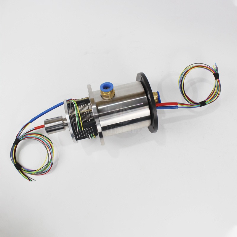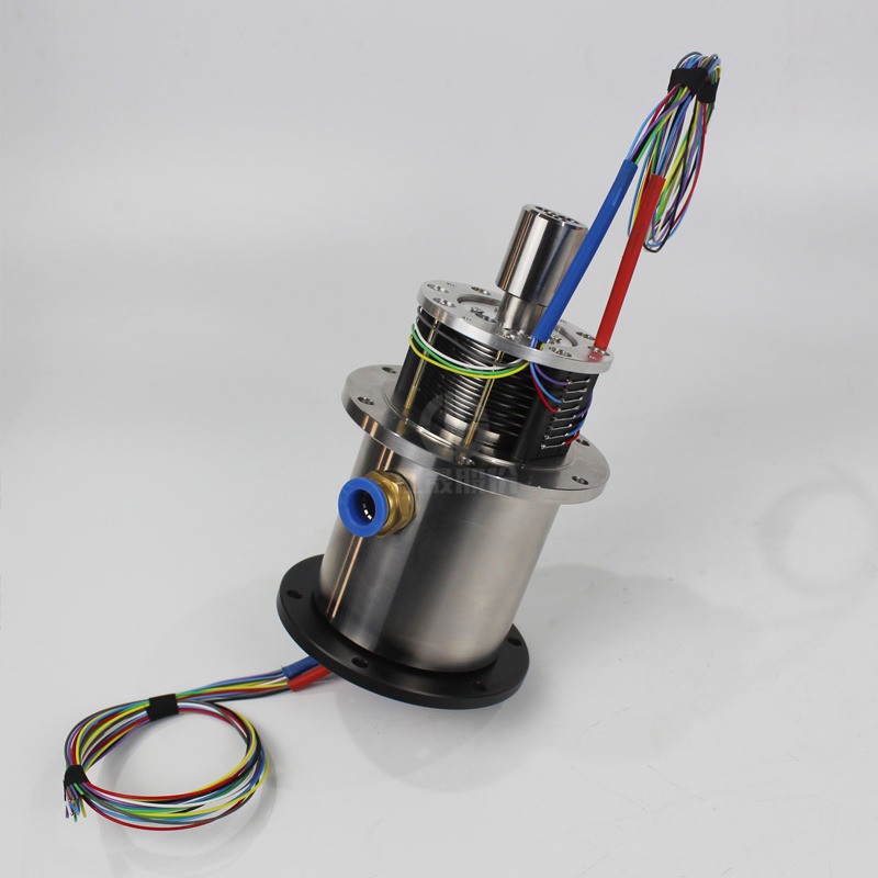 JS2Q78-16是1路气1路液16路电信号的高度集成式组合滑环,主要用于传输精密信号、微弱电流、大电流、高压水、压缩空气、蒸汽、真空等多种气体液体;