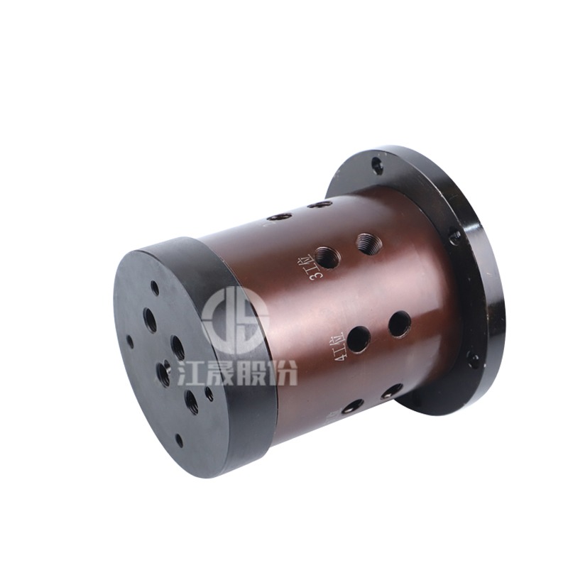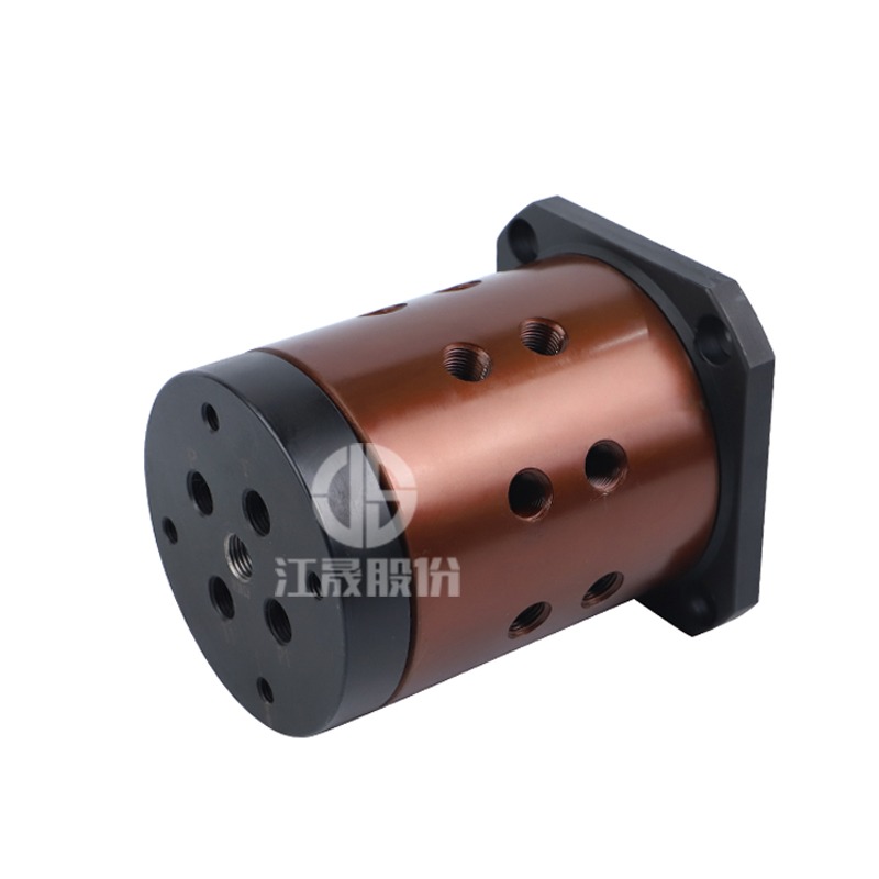 回转工作台上夹治具空油压缸用回转分流阀。回转阀内部经特殊设计,使得回转轴可轻力转动,T且不会漏油。I型为一回路,同时控制开夹动作。I型为二回路,可分别控制开夹动作。RV型式的泄油孔配管务必单独接回油槽,以避免产品背压。