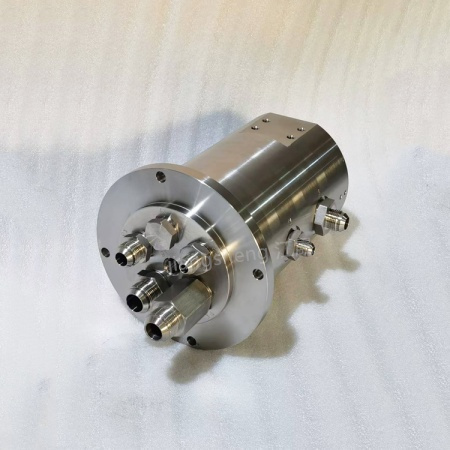 1.解决旋转设备在360°连续转动时,液压油、冷却液等流体介质与电信号/电力的同步、无缠绕传输问题。